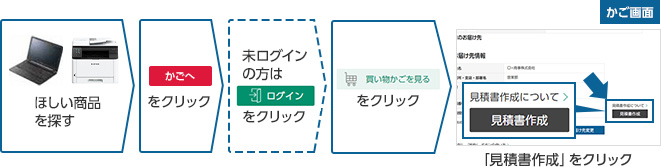 イー・クイックスでは「かご」画面より、簡易見積書が簡単に作成可能です。