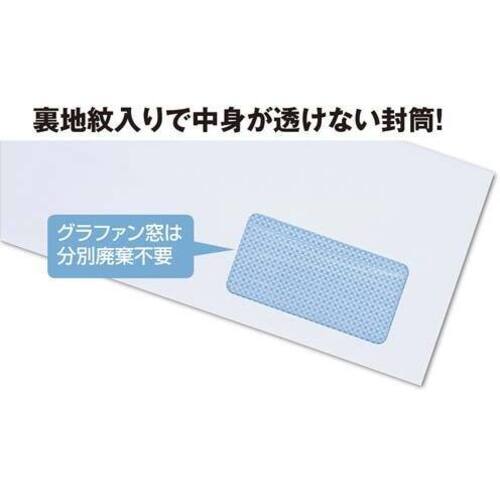 大人気!個人情報を保護する透けない封筒。グラファン窓でゴミ分別不要!●色/ホワイト(ケント紙)●サイズ/長3●寸法/タテ235×ヨコ120mm●坪量/100g/平方メートル●古紙パルプ配合率/古紙配合●貼り合わせ方式/センター貼●テープ・のり/テープ付き●郵便番号枠/〒枠なし●仕様/裏地紋入、グラファン窓●単位(入数)/1パック(100枚入) 【ご注意事項】※1パック単位でお申し込み下さい。※窓付き封筒をプリンターや印刷機に通さないでください。窓部分が溶けたり、はがれたりする恐れがあります。【デジタルカタログ】※こちらの商品のデジタルカタログページは、画像下のリンクからご覧いただけます。