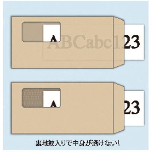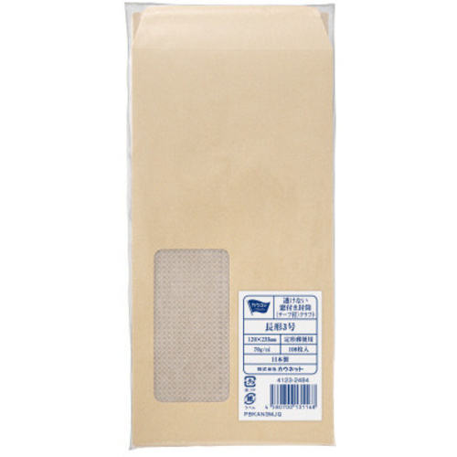 大人気!個人情報を保護する透けない封筒。グラファン窓でゴミ分別不要!●色/クラフト(黄土色)●サイズ/長3●寸法/タテ235×ヨコ120mm●坪量/70g/平方メートル●古紙パルプ配合率/40%●貼り合わせ方式/センター貼●テープ・のり/テープ付き●郵便番号枠/〒枠なし●仕様/裏地紋入、グラファン窓●単位(入数)/1パック(100枚入) 【ご注意事項】※1パック単位でお申し込み下さい。※窓付き封筒をプリンターや印刷機に通さないでください。窓部分が溶けたり、はがれたりする恐れがあります。【デジタルカタログ】※こちらの商品のデジタルカタログページは、画像下のリンクからご覧いただけます。