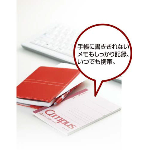ミニノートがとっても便利!ハガキと同じサイズで「コンパクト」だからいつも一緒。大切なメモは、キャンパスミニノートで決まり!持ち歩きにグッド!●仕様/B罫21行48枚●罫/6mm幅中横罫●製本様式/無線とじ●寸法/タテ148×ヨコ105mm(A6)●単位(入数)/1セット(5冊入)※より詳しい商品詳細は参考情報ページ(1)をご覧ください。【デジタルカタログ】※こちらの商品のデジタルカタログページは、画像下のリンクからご覧いただけます。