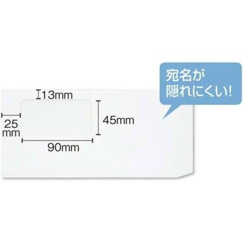 A4三つ折りぴったりサイズのグラファン窓付き封筒。●色/白●サイズ/長6●寸法/タテ220×ヨコ110mm●坪量/80g/平方メートル●古紙パルプ配合率/古紙配合●貼り合わせ方式/センター貼●テープ・のり/テープ付き●郵便番号枠/〒枠なし●仕様/ケント紙、グラファン窓●単位(入数)/1箱(100枚入×5) 【ご注意事項】※1箱単位でお申し込みください。※窓付き封筒をプリンターや印刷機に通さないでください。窓部分が溶けたり、はがれたりする恐れがあります。