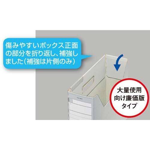 コクヨインターグレイシリーズのファイルボックス。傷みやすいボックス正面の部分を折り返し、補強しました。(補強は片側のみ)●カラー/青●サイズ/A4横スリム●寸法/奥行317×高さ260×背幅75mm●材質/ダンボール(古紙配合)●ワンタッチ底●単位(入数)/1パック(5個入) 【ご注意事項】※1パック単位でお申し込みください。※より詳しい商品詳細は参考情報ページ(1)をご覧ください。【デジタルカタログ】※こちらの商品のデジタルカタログページは、画像下のリンクからご覧いただけます。