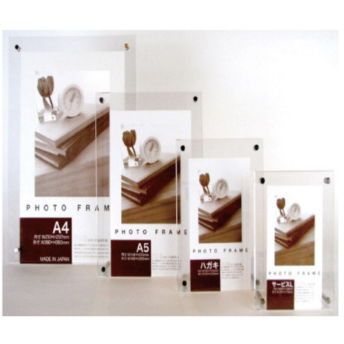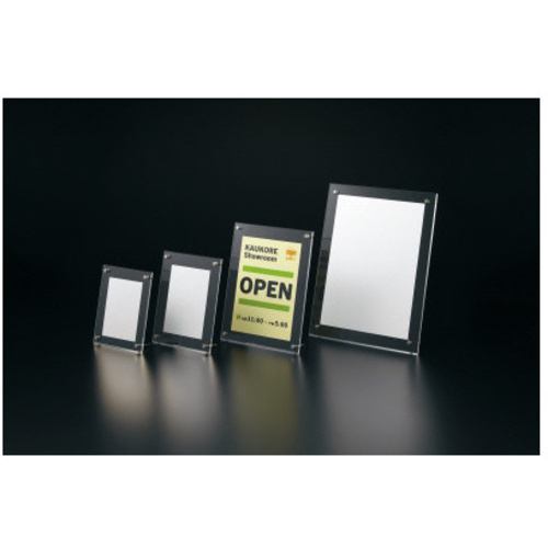 高純度アクリル99%で透明感抜群! 業務用POP、サインなどに最適です。●サイズ/サ-ビスL●セット用紙寸法/90×128mm●外寸法/130×170mm●質量/161g●材質/アクリル●厚さ/5mm●単位(入数)/1セット(5枚入) 【ご注意事項】※1セット単位でお申し込みください。※ヨコ置きできます。