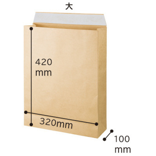 配送、郵送に丈夫な宅配袋!封かんテープ付きのマチ付き封筒。重い荷物の発送に適した、厚手タイプ。水をはじくラミネート加工タイプ。●外寸法/タテ420×ヨコ320×マチ100mm●坪量/100g/平方メートル●仕様/フィルム貼り耐水加工●その他特記事項/ベロ・封かんテープ付き●単位(入数)/1パック(50枚入) 【ご注意事項】※1パック単位でお申し込みください。※この商品は、商品デザイン、パッケージが予告なく変更される場合があります。※この商品は、商品デザイン、パッケージが予告なく変更される場合があります。