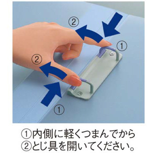 軽い力でワンタッチ操作できる、使いやすい樹脂製とじ具です。フック式のとじ具構造で、書類をしっかりとキープ。明るく清潔感のある5色の透明PP表紙。とじ具はD型リング状で、書類の閲覧もスムーズです。●カラー/青●サイズ/A4タテ●寸法/タテ307×ヨコ243×背幅21mm●収容枚数/100枚●表紙厚/約0.75mm●材質/表紙:再生PP●穴数/2穴(80mmピッチ)●背見出し紙は抜き差し可能●D型リング状●単位(入数)/1箱(10冊入) 【ご注意事項】※1箱単位でお申し込みください。※より詳しい商品詳細は参考情報ページ(1)をご覧ください。
