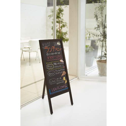 チョークもマーカーも使える優れもの。表面がエンボス加工なので、文字が書きやすくよく映えます。●サイズ/スリム片面●外寸法/幅450×奥行550×高さ1070mm●筆記面外寸法/幅390×高さ790mm●質量/約2300g●材質/フレーム:天然木、ボード:MDF●カラー/ダークブラウン●仕様/マーカーにもチョークにも対応可能なエンボスボード●生産国/中国●単位/1台