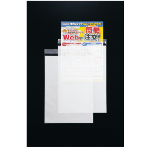 表紙が白、裏面が透明のテープ付きフィルム封筒。●色/透明(片面、乳白)●サイズ/角2●寸法/幅330×高さ240mm●厚さ/0.06mm●材質/CPP●テープ・のり/テープ付き●郵便番号枠/〒枠なし●単位(入数)/1セット(100枚入×5)【ご注意事項】※1セット単位でお申し込み下さい。