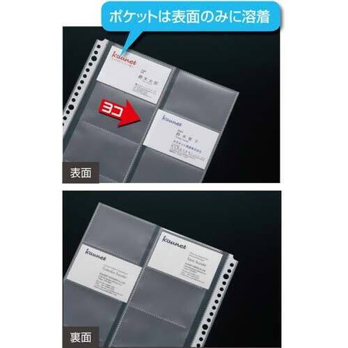 両面印刷名刺の整理に最適なヨコ入れタイプの透明カードポケット。●サイズ/A4タテ●寸法/タテ305×ヨコ215mm●材質/再生PP70%●ポケット内寸法/タテ55×ヨコ91mm●穴数/30穴●片面ポケット●台紙 透明●単位(入数)/1セット(20枚入×5)【ご注意事項】※1セット単位でお申し込みください。