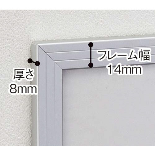 裏入れ式で出し入れ簡単!掲示・ディスプレイ用アルミフレーム。表面PETはUVカット加工付きなので変色をガードします!●サイズ/A1●セット用紙寸法/841×594mm●外寸法/879×632mm●質量/910g●フレーム/幅:14mm、厚さ:8mm●材質/フレーム:アルミ、表面シート:再生PET(厚さ0.4mm)●カラー/シルバー●付属品/紐(1本)●本体ビニール袋入●単位/1枚【ご注意事項】※当日配送対象外商品です。【デジタルカタログ】※こちらの商品のデジタルカタログページは、画像下のリンクからご覧いただけます。