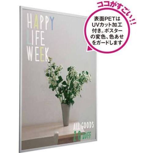 裏入れ式で出し入れ簡単!掲示・ディスプレイ用アルミフレーム。表面PETはUVカット加工付きなので変色をガードします!●サイズ/B2●セット用紙寸法/728×515mm●外寸法/746×533mm●質量/720g●フレーム/幅:14mm、厚さ:8mm●材質/フレーム:アルミ、表面シート:再生PET(厚さ0.4mm)●カラー/ブラック●付属品/紐(1本)●本体ビニール袋入●単位(入数)/1セット(3枚入)【ご注意事項】※1セット単位でお申し込みください。【デジタルカタログ】※こちらの商品のデジタルカタログページは、画像下のリンクからご覧いただけます。