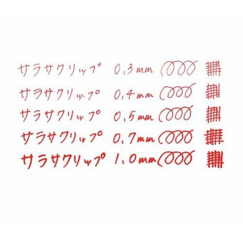 書き味さらさら、インク色あざやか!ジェルボールペンの定番、サラサクリップ。●ボール径/0.7mm●インク色/赤●インキ種類/ゲルインク●仕様/ラバーグリップ●仕様/バインダークリップ●仕様/ノック式●替芯/JF07●単位/1本