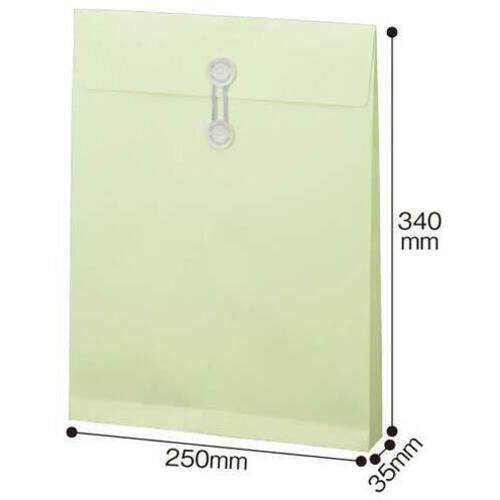 丈夫な塩ビ製のハトメ付きの紙封筒。●色/ウグイス●サイズ/角2マチ・ハトメ付●寸法/タテ340×ヨコ250×マチ35mm●坪量/120g/平方メートル●古紙パルプ配合率/古紙配合●テープ・のり/なし●仕様/マチ付き、ハトメ付き●単位(入数)/1箱(10枚入)【ご注意事項】※1箱単位でお申し込み下さい。【デジタルカタログ】※こちらの商品のデジタルカタログページは、画像下のリンクからご覧いただけます。