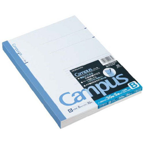 コクヨの定番キャンパスノート!快適な書き心地をさらに追求!目印によりノートに線が引きやすい!背にタイトルが書ける!●仕様/B罫35行30枚●罫/6mm幅中横罫●製本様式/無線とじ●寸法/タテ252×ヨコ179mm(セミB5)●単位(入数)/1セット(5冊入)※より詳しい商品情報は、参考情報ページ(1)をご覧ください。【デジタルカタログ】※こちらの商品のデジタルカタログページは、画像下のリンクからご覧いただけます。