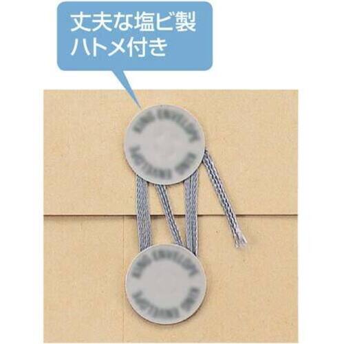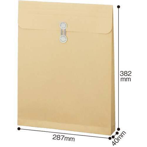 丈夫な塩ビ製のハトメ付きのクラフト封筒。●色/クラフト(黄土色)●サイズ/角0マチ・ハトメ付●寸法/タテ382×ヨコ287×マチ40mm●坪量/120g/平方メートル●古紙パルプ配合率/古紙配合●テープ・のり/なし●仕様/マチ付き、ハトメ付き●単位(入数)/1箱(10枚入) 【ご注意事項】※1箱単位でお申し込み下さい。【デジタルカタログ】※こちらの商品のデジタルカタログページは、画像下のリンクからご覧いただけます。