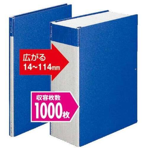 ポリ足を横から出し入れできるとじ具で、書類の抜き差しを簡単かつ容易です。書類を最大10センチ幅(約1000枚)まで収容できます。表紙に全面印刷シボ加工を施してあり、高級感があるように見えます。●サイズ/A4タテ●寸法/303×220×14から114ミリ●とじ厚/1から100ミリ●カラー/青●材質/色板紙(2枚重ね、古紙パルプ配合)●穴数/2穴●収容枚数/1000枚●単位(入数)/1セット(10冊入) 【ご注意事項】※1セット単位でお申し込みください。