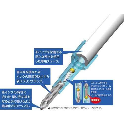 なめらかペンで大人気!速乾性に強いボールペンです●ボール径/0.5mm●軸色/青●インク色/青●インク種類/油性染料+顔料インク●グリップ材質/ラバー●仕様/ノック式●替芯/SXR5●単位(入数)/1箱(10本入)【ご注意事項】※1パック単位でお申し込み下さい。【デジタルカタログ】※こちらの商品のデジタルカタログページは、画像下のリンクからご覧いただけます。
