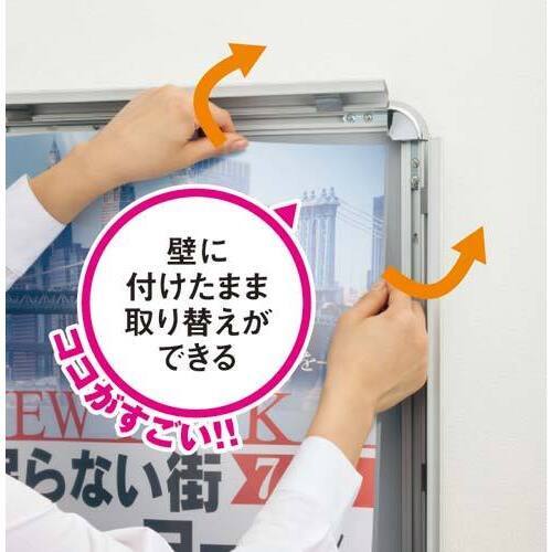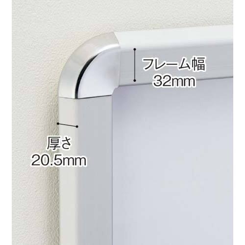 前開き式で出し入れラクラク!ラウンドフォルムが中のポスターを引き立てます。●フレーム寸法/785×572mm●厚さ/20.5mm●フレーム幅/32mm●質量/2000g●材質/フレーム:アルミ、表面:塩ビ(1mm厚)、背板:MDF●種別/B2●機能/タテ・ヨコ仕様●付属品/吊り紐1本●セット用紙寸法/728×515mm●フレーム/幅:32mm、厚さ:20.5mm●単位/1セット(3枚入) 【ご注意事項】※1セット単位でお申し込みください。