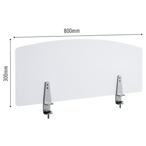 透け感が新鮮なデスクトップパネル。便利なオプションもご用意。●外寸法/幅800×高さ300mm(取付金具除く)●パネル厚さ/5mm●取付可能寸法/天板厚18mmから39mm・天板奥行35mm以上●材質/パネル:アクリル、金具:スチール●質量/2kg●金具仕様/クランプ式●カラー/フロスト●生産国/台湾●単位/1枚●組立人数/1人●組立時間/10分●必要工具/マイナスドライバー【返品に関するご注意】※開梱または組み立て開始後のお客様組立て家具は、お客様のご都合による返品はお受けできません。