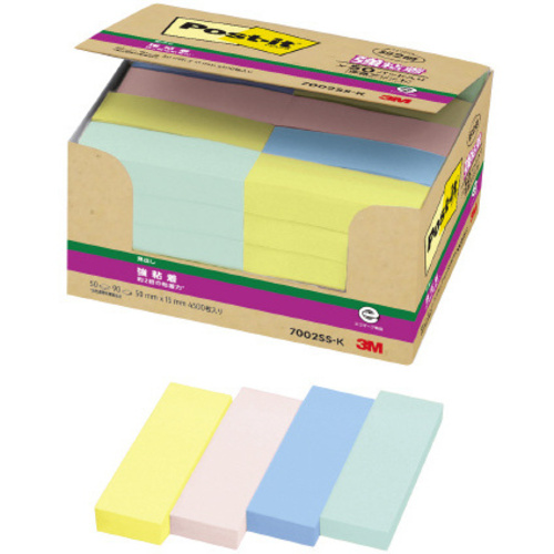 つきにくかった樹脂面にもしっかり貼れて、きれいにはがせる強粘着タイプのポストイット。手帳やマーキングに便利なミニサイズ。文字が見やすいパステルカラー。エコノパックよりもさらにたっぷり入ってお得な混色パワーパック。●寸法/50×15mm●粘着部分/15mm側●カラー/4色:イエロー20冊、ピンク、ネプチューンブルー、アップルグリーン各10冊●1冊/90枚●単位(入数)/1パック(50冊入)【ご注意事項】※商品デザイン、パッケージ、仕様が予告なく変更される場合があります。【デジタルカタログ】※こちらの商品のデジタルカタログページは、画像下のリンクからご覧いただけます。