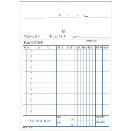 見やすく書きやすい、コクヨの伝票。●寸法/タテ176×ヨコ125mm●枚数/100枚●材質/古紙配合●単位/1冊【ご注意事項】※この商品は、軽減税率表記対応品へ順次リニューアルしています。出荷倉庫により、新旧デザイン(型番のNの有無)どちらかでのお届けとなります。ご了承ください。【デジタルカタログ】※こちらの商品のデジタルカタログページは、画像下のリンクからご覧いただけます。