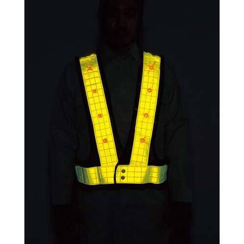 作業者の安全を守る。正面8個・背面8個の赤色LEDが点滅するので、夜間でも認識しやすい。両側ファスナーでウエストサイズが調整可能です。幅広7cm反射テープ使用で視認性アップ。氏名・会社名・血液型記入タグ付き。持ち運びに便利な収納ポーチ付き。●サイズ/フリー●材質/本体:ナイロンメッシュ、反射材:PVC、収納ポーチ:ポリエステル●色/イエロー●使用電球/赤色LED0.03W×16個(前面8個・背面8個)●電池/単3形乾電池1.5V×2本(別売)●視認性能/約30M(夜間)●連続使用可能時間/約10日間(目安)●単位/1着【返品に関するご注意】※開封後はお客様のご都合による返品はお受けできません。