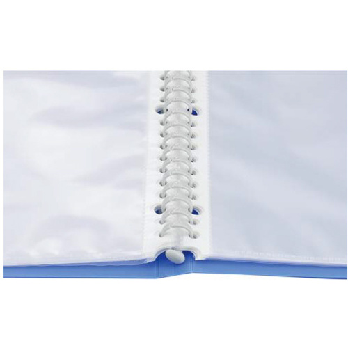表紙が360度折り返せる。樹脂製とじ具のクリヤーブック。●サイズ/A4タテ●寸法/タテ311×ヨコ248×背幅25mm●カラー/青●材質/表紙・ポケット:PP、とじ具:ポリカーボネート・ポリプロピレン●ポケット枚数/30枚●仕様/差替え式●中台紙/なし●最大収容枚数/35枚●単位/1冊【返品に関するご注意】※この商品はお取り寄せ品のため、お客様のご都合による返品はお受けできません。