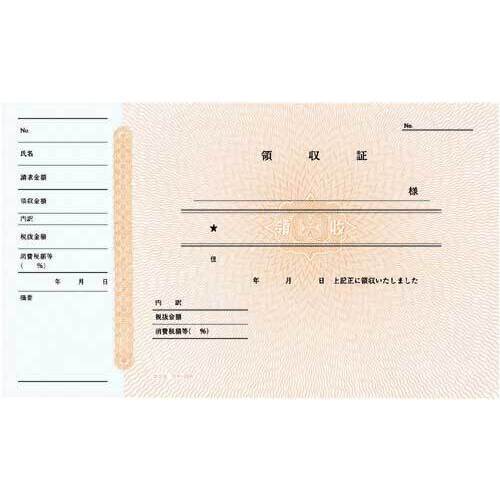 B6ヨコの領収証です。●寸法/タテ125×ヨコ210mm●枚数/50枚●単位(入数)/1セット(10冊入) 【ご注意事項】※1セット単位での販売になります