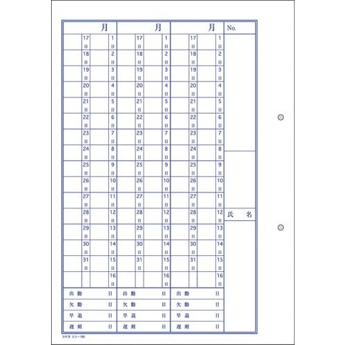 出勤簿中紙(A)です。●寸法/タテ250×ヨコ177mm●枚数/100枚●単位(入数)/1セット(10冊入) 【ご注意事項】※1セット単位での販売になります