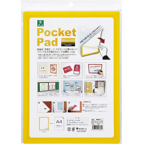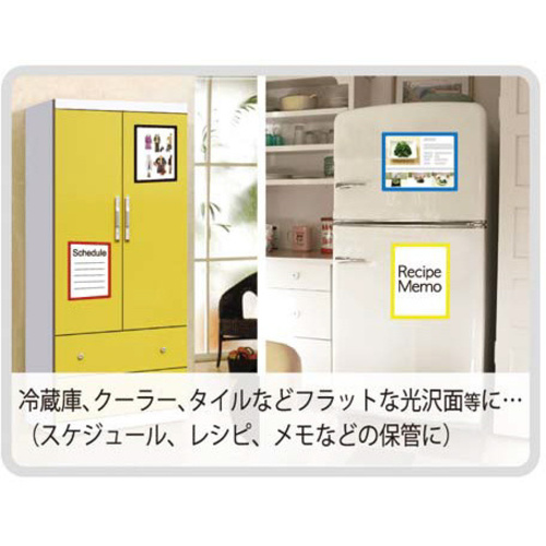 フラットな光沢面に、何度でも繰り返し貼って剥がせます。●外寸法/タテ322×ヨコ235×厚さ3.5mm●質量/86g●材質/表面:PET、シルク印刷 本体:PVC発泡フォーム 粘着材:シリコーンノンスリップフォーム●フレーム寸法/210mm×297mm(A4サイズ)●単位/1枚●盤面仕様/無地●設置タイプ/吸着タイプ●サイズ/A4●材質/表面:PET・シルク印刷、本体:PVC発泡フォーム、吸着面:シリコーンノンスリップフォーム●枠カラー/黄●マグネット対応/非対応