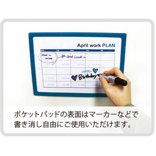 フラットな光沢面に、何度でも繰り返し貼って剥がせます。●外寸法/タテ322×ヨコ235×厚さ3.5mm●質量/86g●材質/表面:PET、シルク印刷 本体:PVC発泡フォーム 粘着材:シリコーンノンスリップフォーム●フレーム寸法/210mm×297mm(A4サイズ)●単位/1枚●盤面仕様/無地●設置タイプ/吸着タイプ●サイズ/A4●材質/表面:PET・シルク印刷、本体:PVC発泡フォーム、吸着面:シリコーンノンスリップフォーム●枠カラー/青●マグネット対応/非対応
