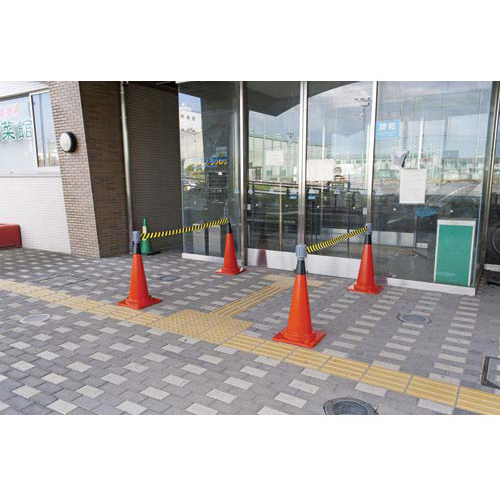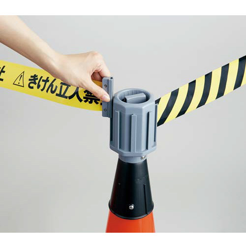 お手持ちのコーンに取り付けるだけで、簡単に区画整備ができます。手巻き式でテープを出し入れ出来、テープの長さを自由に調節することが出来ます。従来のバーと比べ、収納面で圧倒的に省スペースで、持ち運びも簡単に行えます。7方向にテープの連結が可能で、L字やコの字などの複雑な配置を行うことが出来ます。●寸法/本体:幅96×高さ256mm、テープ長さ:5M●質量/300g●材質/ABS樹脂、ジョイント部:ポリエチレン●付属品/固定用ビス2本●単位/1個【ご注意事項】※1個のみでの使用はできません。同商品を2個以上、もしくは専用のジョイント(カタログ品番:1057ー8152)1個と組合せてご使用ください。