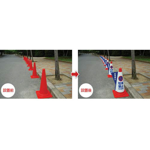 お手持ちの三角コーンに被せるだけ。古い三角コーンも美しい姿に一新。街の景観向上にもお役に立ちます。折りたたみ式で、かさばりません。●寸法/縦520×横370×厚さ0.4mm●質量/125g●材質/ポリプロピレン●単位/1枚