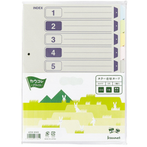 紙製の2穴インデックス。価格で選ぶならオススメ!●サイズ/A4タテ●寸法/タテ297×ヨコ210(+11)mm※()内は見出し高さ●材質/紙(古紙パルプ配合)●穴数/2穴(80mmピッチ)●仕様/1組(5色10山見出し+扉紙)●単位(入数)/1パック(5組入)【ご注意事項】※1パック単位でお申し込みください。※この商品は、商品デザイン、パッケージが予告なく変更される場合があります。※水色・黄緑・桃・橙に関しては2018年4月から8月の間に原紙切替により順次色味が変更になります。【デジタルカタログ】※こちらの商品のデジタルカタログページは、画像下のリンクからご覧いただけます。