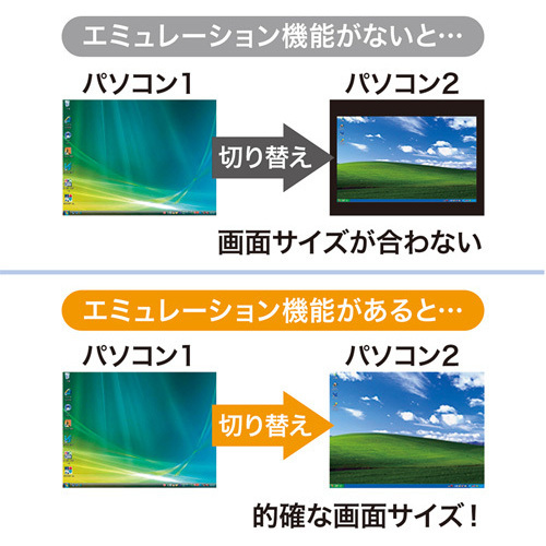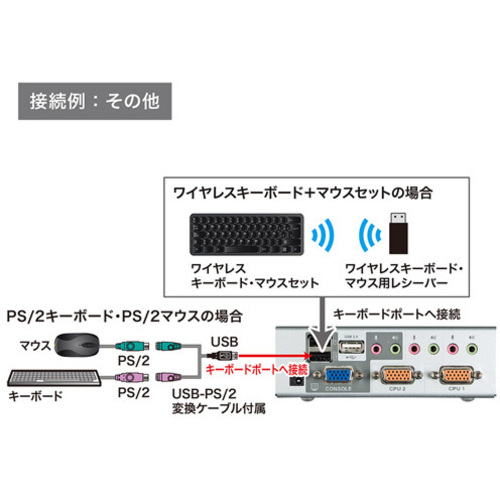 ●ディスプレイエミュレーション機能を搭載し、USB&PS/2コンソール両対応でUSB2.0ハブも共有できる2ポートKVMスイッチ。【ご注意事項】※こちらの商品は返品不可商品となります。※商品仕様につきましては、メーカーHPにてご確認ください。※仕入先直送品のため、在庫状況により上記お届け目安にてお届けできない場合がございます。※詳細納期をご確認されたい場合は、0120-812-069までご連絡ください。(お問い合わせ受付時間)月曜日~金曜日9時から18時30分(祝日を除く)
