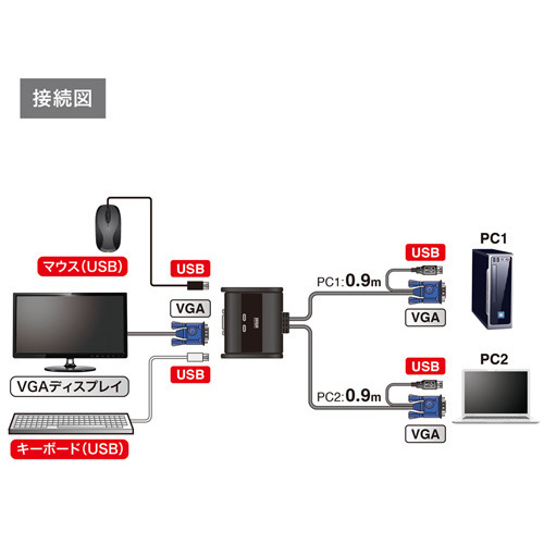 1組のUSBキーボード・USBマウス・ディスプレイを切替共有でき、ノートパソコンにも対応したパソコン自動切替器。●1組のUSBキーボード・USBマウス・ディスプレイで2台のパソコンを切り替えて使用できます。●ケーブル一体型のコンパクトタイプなので設置の際に場所をとりません。●ホットキーは[Ctrl]×2回または[Scr Lock]×2回から選ぶことができ、ご使用ソフトでホットキーが重なっても回避することができます。●接続されたパソコンの電源を入れたまま、コンソールの切替が可能です。●キーボードポートをエミュレーションしているため、再起動(リブート)時にポートを切り替えなくても完全起動が可能です。【ご注意事項】※こちらの商品は返品不可商品となります。※商品仕様につきましては、メーカーHPにてご確認ください。※仕入先直送品のため、在庫状況により上記のお届け目安にてお届けできない場合がございます。※詳細納期をご確認されたい場合は、0120-812-069までご連絡ください。(お問い合わせ受付時間)月曜日~金曜日9時から18時30分(祝日を除く)