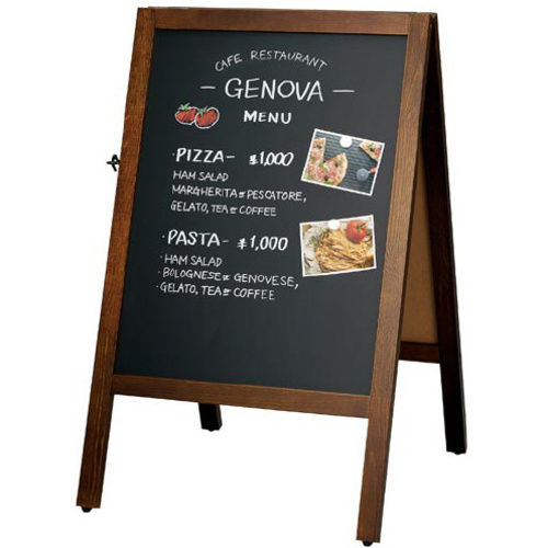 アンティーク風の木製フレームがおしゃれ!チョーク、マーカー、マグネット対応の万能タイプ。●仕様/チョーク、ブラックボードマーカー、マグネット対応。両面筆記可能。●外寸法/幅520×高さ810×奥行580mm●筆記面寸法/幅450×高さ590mm●質量/3860g●厚さ/板面:4mm、フレーム:20mm●材質/フレーム:天然木、板面:MDF、スチール●生産国/中国●単位/1台