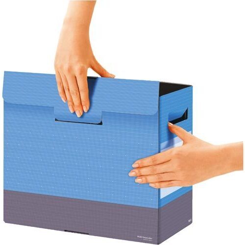 ほこりの侵入を防ぐフタ付きタイプ。しっかりした強度で重ねて保管もできる(2段まで)。持ち歩きにも便利。●サイズ/A4ヨコ●寸法/幅200×奥行318×高さ261mm●カラー/スカイブルー●材質/段ボール(古紙パルプ配合)●単位(入数)/1セット(10個入) 【ご注意事項】※1セット単位でお申し込みください。