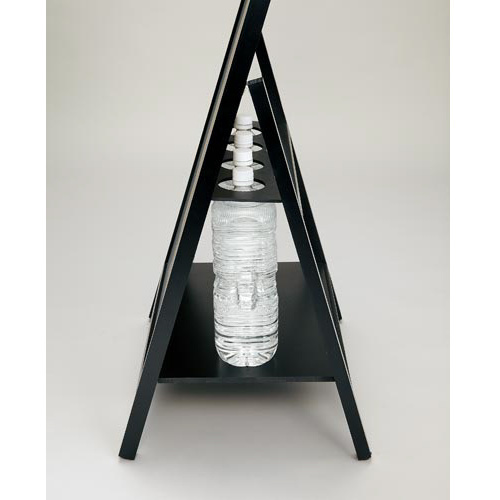 2リットルペットボトルを4本置けば風速15m/秒にも耐えられるA型ブラックボード。片面のみ筆記可能。折りたためるので収納にも便利。●仕様/チョーク、ブラックボードマーカー、マグネット使用可能●外寸法/幅520×奥行490×高さ1100mm●筆記面寸法/幅470×高さ860mm●カラー/ブラック●質量/4800g●材質/黒板面:表面処理鋼板、フレーム:天然木、留め金具:カーボンスチール、ペットボトルトレー:塗装MDF●付属品/取扱説明書●生産国/中国●単位/1台