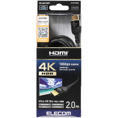 Ultra HD Blu-rayに最適。18Gbpsの高速伝送と高色域になった超高画質映像の伝送ができる、4K/Ultra HD対応のPremium HDMI cable規格認証済み イーサネット対応Premium HDMIケーブル 【ご注意事項】※こちらの商品は返品不可商品となります。※商品仕様につきましては、メーカーHPにてご確認ください。※仕入先直送品のため、在庫状況により上記のお届け目安にてお届けできない場合がございます。※詳細納期をご確認されたい場合は、0120-812-069までご連絡ください。(お問い合わせ受付時間)月曜日~金曜日9時から18時30分(祝日を除く)
