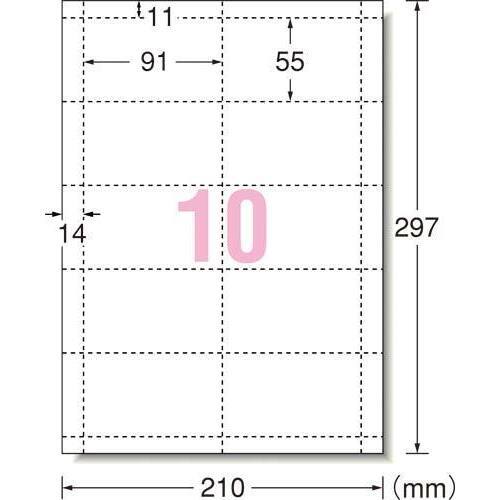 各種プリンター兼用で印刷できる、上質紙素材の名刺用紙です。印刷後ミシン目に沿って山折り谷折りするだけで名刺サイズに切り離すことができます。ちょっと薄めの紙を使用しています。●仕様/マイクロミシンタイプ●サイズ/A4●坪量/157g/平方m●紙厚/170μm●カット数/10面(2列×5段)カット●一片の大きさ/91×55mm●用途/レーザー(カラー・モノクロ)、コピー機(カラー・モノクロ)、インクジェット(染料・顔料)、熱転写●単位(入数)/1冊(10枚入)【ご注意事項】※ご使用の機種に対応する坪量をご確認のうえ、ご利用ください。※参考情報URLにアクセスしていただければ印刷ソフト〈ラベル屋さん〉を無償でご利用いただけます。