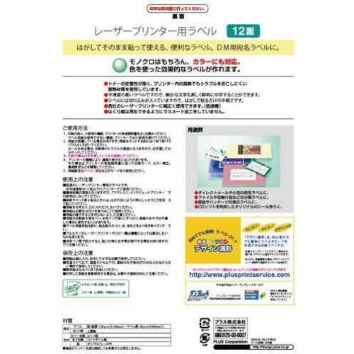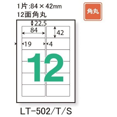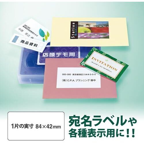 トナーの定着性が良いレーザープリンター専用ラベル。カラーレーザーにも対応。オリジナルラベルを手軽に作成できる。宛名ラベルや各種表示用に。●サイズ/A4●白色度/約90%●坪量/71g/平方m●カット数/12面カット角丸●一片の大きさ/84×42mm●紙厚/総厚:128μm(ラベル本体:70μm)●用途/レーザー(カラー・モノクロ)、コピー機(カラー・モノクロ)、熱転写●単位(入数)/1冊(20枚入)