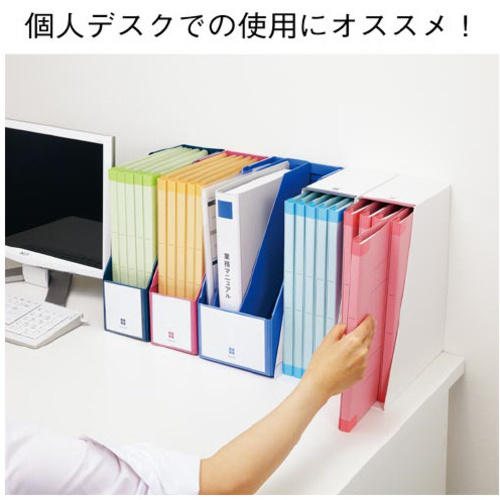 耐久性に優れたPP製ファイルボックス。底板に巻き込み防止機能が付いているので、薄い書類がたわみにくいPP製ファイルボックス。背見出し紙が抜き差しできるので、分類・整理に役立ちます。個人のデスクでの使用にオススメ!●カラー/ブルー●サイズ/A4タテ●寸法/幅104×奥行263×高さ312mm●材質/再生PP●背見出し紙付●単位/1個 【ご注意事項】※この商品は、商品デザイン、パッケージが予告なく変更される場合があります。【デジタルカタログ】※こちらの商品のデジタルカタログページは、画像下のリンクからご覧いただけます。