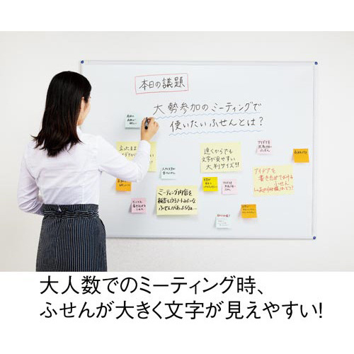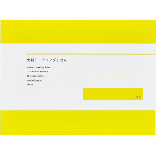 150×203mmの大型サイズで大きい文字を書くことができる大判ミーティングふせん。会議の場で様々な意見を壁に貼って一覧化する時などに便利です。色はパステルイエローです。●1片のサイズ/150×203mm●枚数/100枚(25枚入×4)●ふせんの色/パステルイエロー●単位(入数)/1セット(3冊入) 【ご注意事項】※商品デザイン、パッケージ、仕様が予告なく変更される場合があります。