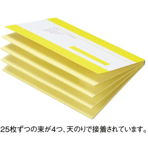 150×203mmの大型サイズで大きい文字を書くことができる大判ミーティングふせん。会議の場で様々な意見を壁に貼って一覧化する時などに便利です。色はパステルイエローです。●1片のサイズ/150×203mm●枚数/100枚(25枚入×4)●ふせんの色/パステルイエロー●単位(入数)/1セット(6冊入) 【ご注意事項】※商品デザイン、パッケージ、仕様が予告なく変更される場合があります。