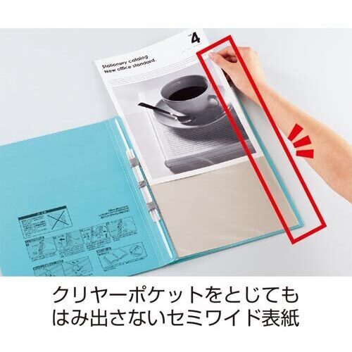 通常のガバットファイルよりもワイドな表紙サイズで、クリヤーポケットを綴じてもはみ出さずに使えます。●サイズ/A4-S●寸法/タテ303mm×ヨコ240mm×背幅14から114mm●カラー/オフホワイト●材質/色板紙(2枚重ね、古紙パルプ配合)●穴数/2穴●収容枚数/1000枚●単位(入数)/1セット(5冊入)【ご注意事項】※4穴・3穴ポケットや他社製の2穴A4リフィル(クリヤーポケット)をご使用いただく場合は、ポケットが表紙からはみ出す場合がございます。