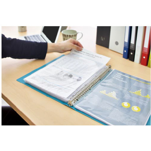 「背幅が変わる」機能と「ガイド機能付き専用ポケット」により従来品に比べて約1.5倍のポケットを収容することができます。レバーを立ててとじ具をロックすれば衝撃でリングが開いてしまうことがありません。●サイズ/A4タテ●寸法/タテ311×ヨコ262×背幅33から50mm●リング内径/23mm●カラー/ターコイズブルー●材質/表紙・ポケット:再生PP●穴数/30穴●1ポケット最大収容枚数/20枚(PPC用紙64g/平米換算)●中紙/なし●付属ポケット数/20枚●最大収容ポケット数/110枚●背見出し紙/あり●替紙品番/ラ-NE880●単位/1冊