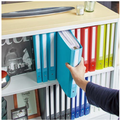 「背幅が変わる」機能と「ガイド機能付き専用ポケット」により従来品に比べて約1.5倍のポケットを収容することができます。レバーを立ててとじ具をロックすれば衝撃でリングが開いてしまうことがありません。●サイズ/A4タテ●寸法/タテ311×ヨコ262×背幅33から50mm●リング内径/23mm●カラー/ブラック●材質/表紙・ポケット:再生PP●穴数/30穴●1ポケット最大収容枚数/20枚(PPC用紙64g/平米換算)●中紙/なし●付属ポケット数/20枚●最大収容ポケット数/110枚●背見出し紙/あり●替紙品番/ラ-NE880●単位/1冊