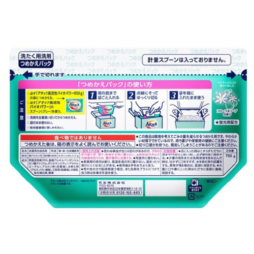 スプーン1杯で驚きの白さに!●容量/750g●成分/界面活性剤19%、蛍光剤配合●種別/詰替用●液性/弱アルカリ性●使用量の目安/水30Lに対し22g●香り/フローラルソープの香り●有効成分/界面活性剤19%、アルカリ剤、水軟化剤●単位/1箱(8個入)【ご注意事項】※メーカーの都合によりパッケージが予告なく変更される場合があります。【デジタルカタログ】※こちらの商品のデジタルカタログページは、画像下のリンクからご覧いただけます。