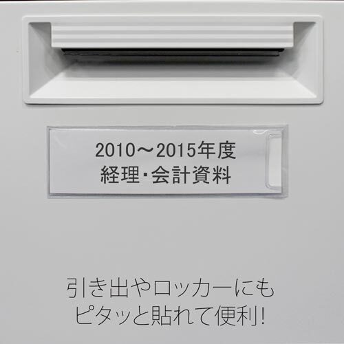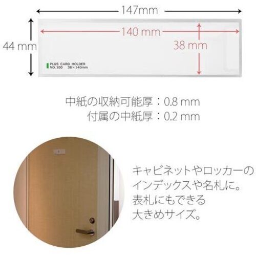 裏面にすぐ貼れる接着剤付。●寸法/幅147×高さ44mm●材質/ポリ塩化ビニル(PVC)(無移行性加工)●中紙サイズ/140×38mm●単位/1箱(100枚入)
