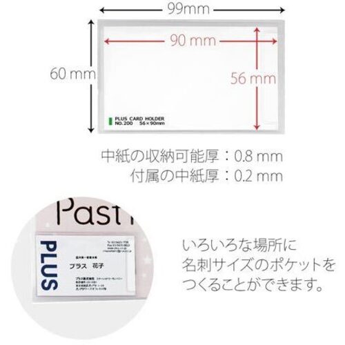 裏面にすぐ貼れる接着剤付。名刺が入るサイズ。●寸法/幅99×高さ60mm●材質/ポリ塩化ビニル(PVC)(無移行性加工)●中紙サイズ/90×56mm●単位/1箱(100枚入)